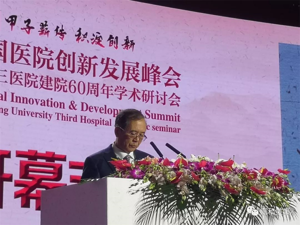 北医三院院长乔杰在致辞中表示:此次创新峰会,不仅是和大家一起见证北医三院一个甲子的风雨历程,而且是大家一起交流医院管理经验心得和探索新时代大型医院的发展良策的好机会。